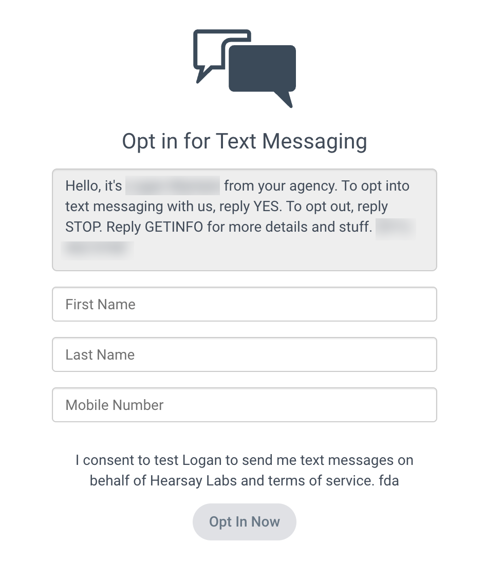 Une fois le formulaire validé, Hearsay Systems enverra automatiquement un SMS en votre nom au client.